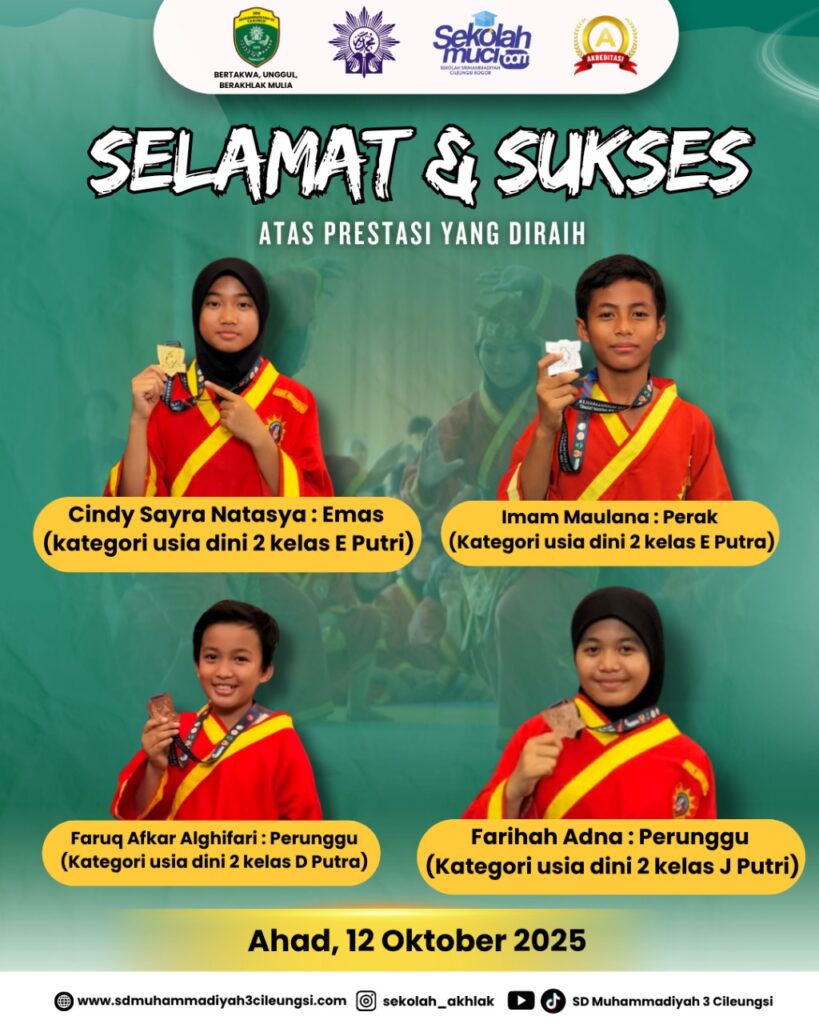 - Faruq Afkar Al Ghifari (Usia Dini, D Putra) Juara 3 medali perunggu