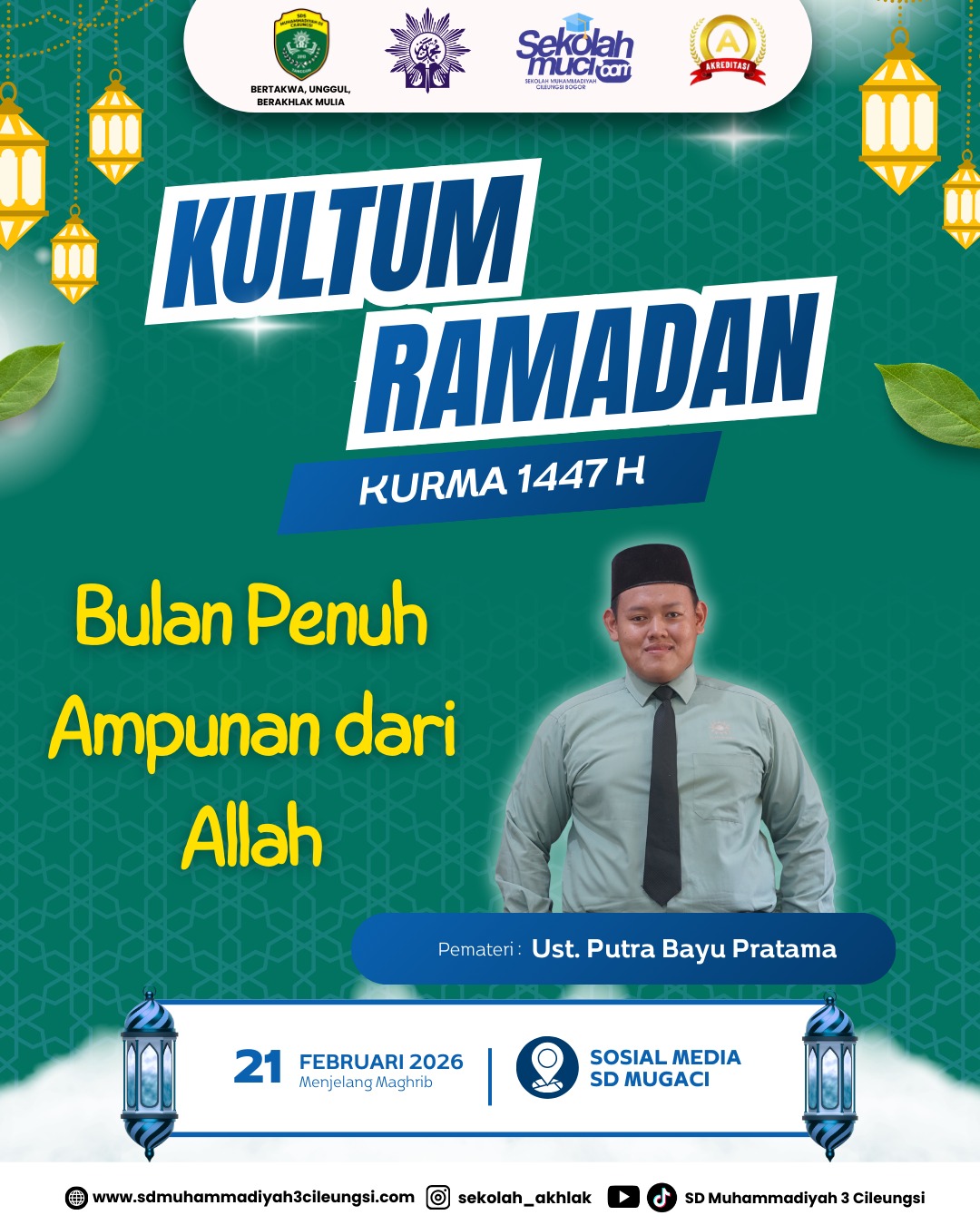 Kultum Ramadan (KURMA) 1447 H kali ini mengangkat tema “Bulan Penuh Ampunan dari Allah”. Kultum disampaikan oleh Ustadz Putra Bayu Pratama, menjelang waktu Maghrib.
