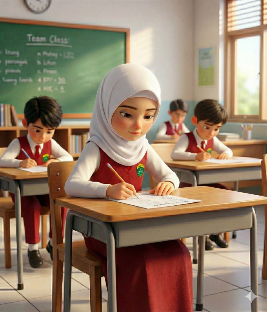 Kemudian ini Cici sosok murid perempuan sholehah yang berpenampilan rapi, berakhlak mulia, rajin belajar dan membaca, pintar membaca Al-quran, dan senang menghafal Al-quran.