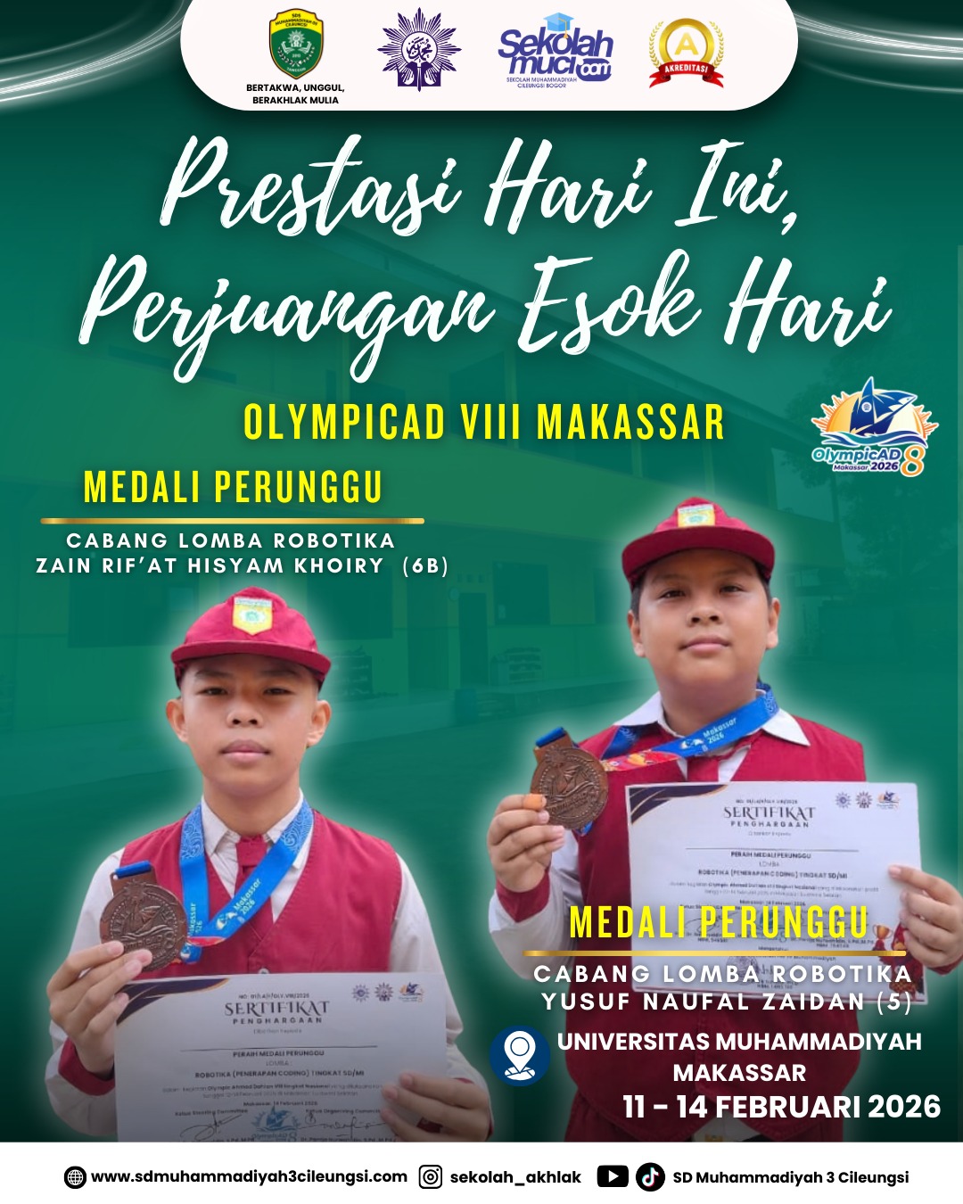 Terima kasih kepada orang tua siswa yg sudah mengizinkan putranya mengikuti lomba, kepada guru pembimbing sekaligus pendamping lomba Ust. Faiz, dewan guru dan staf, serta seluruh orang tua siswa atas dukungan dan doanya. 🙏🏼